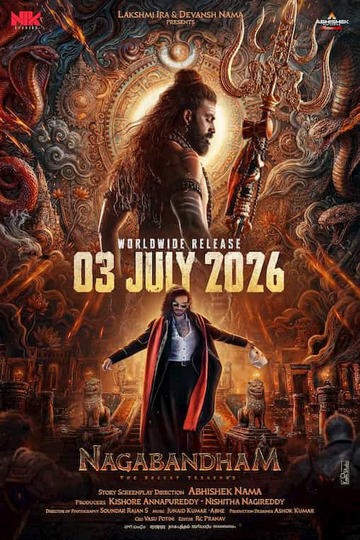 The global release date of the pan-Indian Telugu film Nagabandham, written and directed by Abhishek Nama, has been announced. The film will hit theaters globally on July 3, 2026. The release date was announced by releasing a mass poster of the film. Recently, the song “Namo Re” from the film was also released. Produced by Kishore Annapur Reddy and Nishita Nagireddy under the banner of NIK Studios and Abhishek Pictures, the film is presented by Lakshmi Ira and Devansh Nama. The co-producer is Tarak Cinemas.