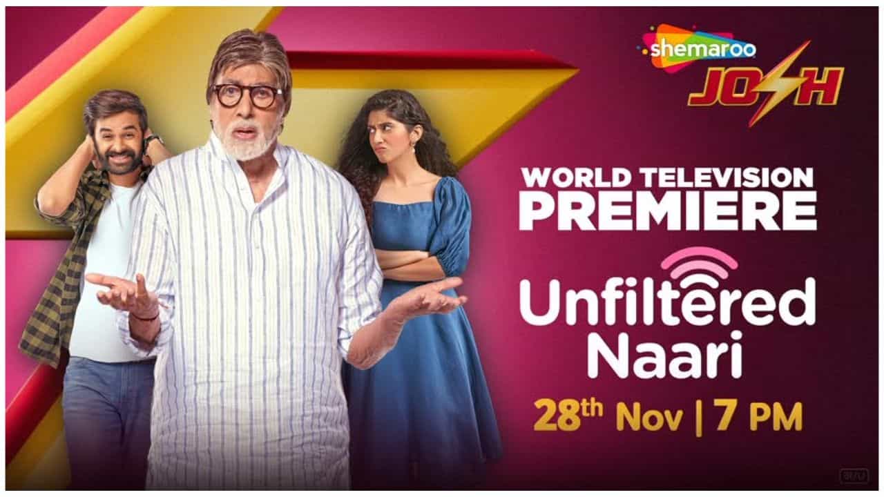 Shemaroo Josh is set to captivate viewers with the World Television Premiere of ‘Unfiltered Naari’ on 28th November 2025, the Hindi-dubbed version of the Gujarati blockbuster movie ‘Fakt Mahilao Maate’, starring Yash Soni alongside the legendary Amitabh Bachchan.