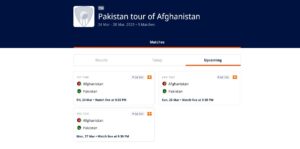 AFG Vs PAK Schedule