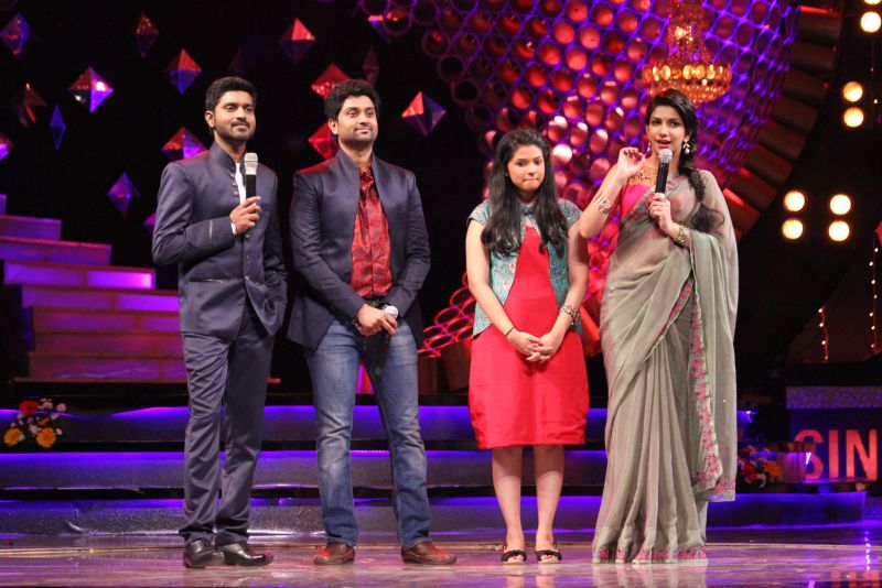 The prestigious judges for the semi finals were singers Mano, Malgudi Shuba, Vijay Prakash, Unni Krishnan and Srinivas, who were excited to hear the musical treat. ” This time it is going to be a competitive round between last seasons finalists and the current season semi finalists, so the big responsibility is in our hands to choose the best contestants for the finals . Actually the job is tougher because all the four semi-finalists are best in their own way of singing” says the excited judge mr. Unni krishnan.