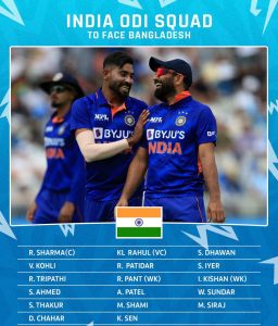 Rohit Sharma (Captain), Shikhar Dhawan, Virat Kohli, Rajat Patidar, Shreyas Iyer, Rahul Tripathi, Washington Sundar, Axar Patel, Shahbaz Ahmed, KL Rahul, Rishabh Pant, Ishan Kishan, Shardul Thakur, Mohammed Shami, Mohammed Siraj, Deepak Chahar, Kuldeep Sen.
