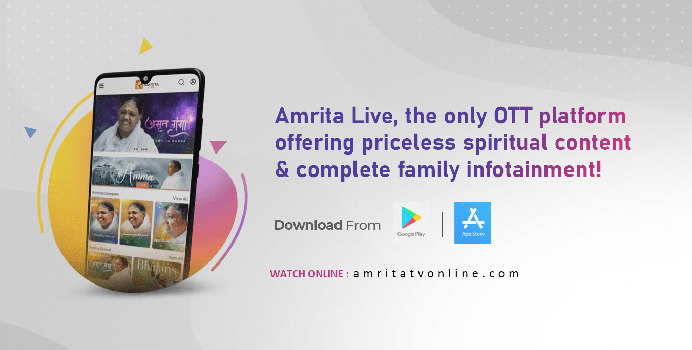 Malayalam FTA (Free to Air) Channel From Mata Amritanandamayi Math Launched it’s official Android and IOS Mobile Application Titled, Amrita Live. It’s Available on Apple Store, Google Play Store for Download for Free. You need to create and Account to use the service, With your email id can create the same. Tagline of this service is Amrita Live, the only OTT platform offering priceless spiritual content & Complete family infotainment.