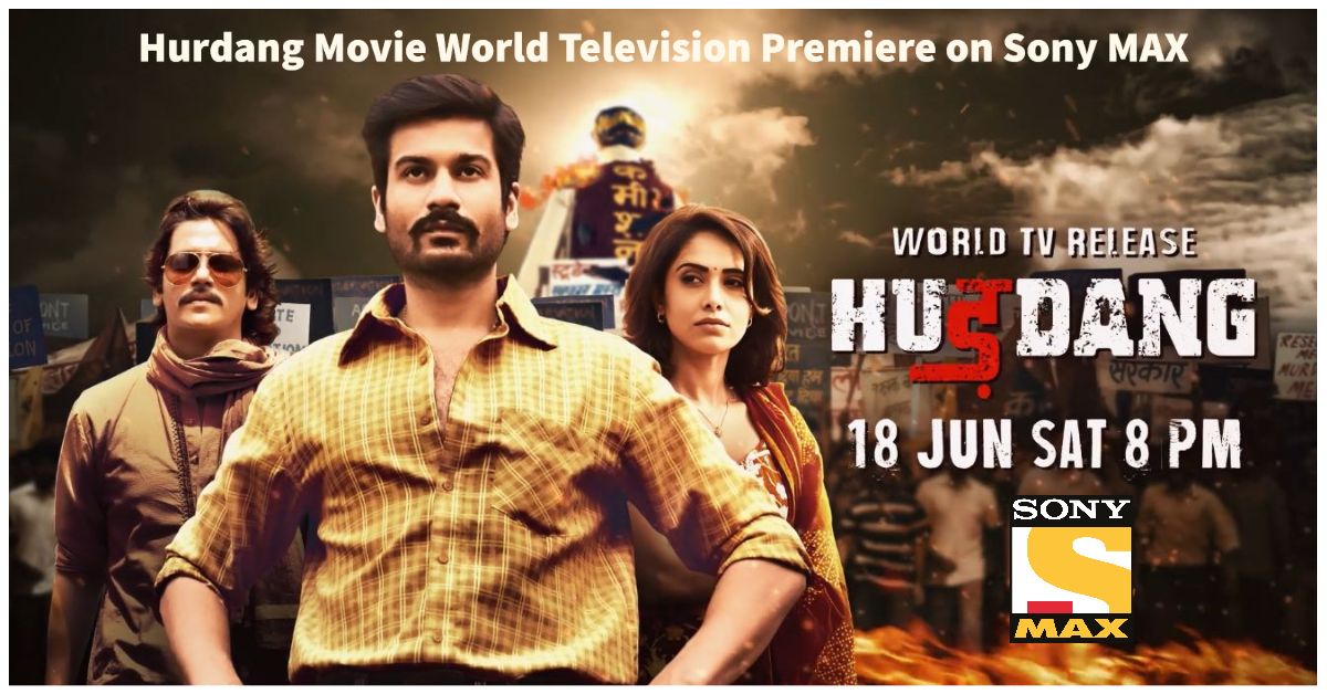 Sony MAX Channel bringing Television Premier of latest Hindi Movie Hurdang Staring Sunny Kaushal, Nushrratt Bharuccha , Vijay Varma , Shubhashish Jha .Nushrratt Baruccha has been making headlines for her upcoming projects in Bollywood. The actress who started her career with essaying girl-next-door or the quintessential female love interest kind of roles in fun filled rom-coms is now gradually moving towards movies that have a powerful social message. One such socially relevant film that dared to break the romance movie mould is Hurdang.