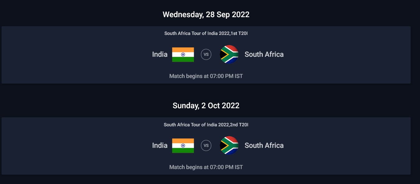 | 28th September | India Vs South Africa 1st T20I | 07:30 PM | Greenfield International Stadium, Thiruvananthapuram | Star Sports | Disney+Hotstar |
