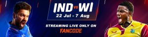 Fancode is the OTT Platform Showing Live Streaming of India Tour of West Indies 2022, There will be 3 One day matches and 5 Twenty20 matches in the Tour. After a Long, Prasar Bharathi’s Sports Channel Airing Exclusive Coverage of Team India Playing Cricket match. FanCode partners DD Sports for exclusive TV broadcast of the India tour of West Indies. The India Vs West Indies scheduled between July 22 and August 7, will be the first India-away series to be hosted exclusively on DD Sports in the last 15 years.
