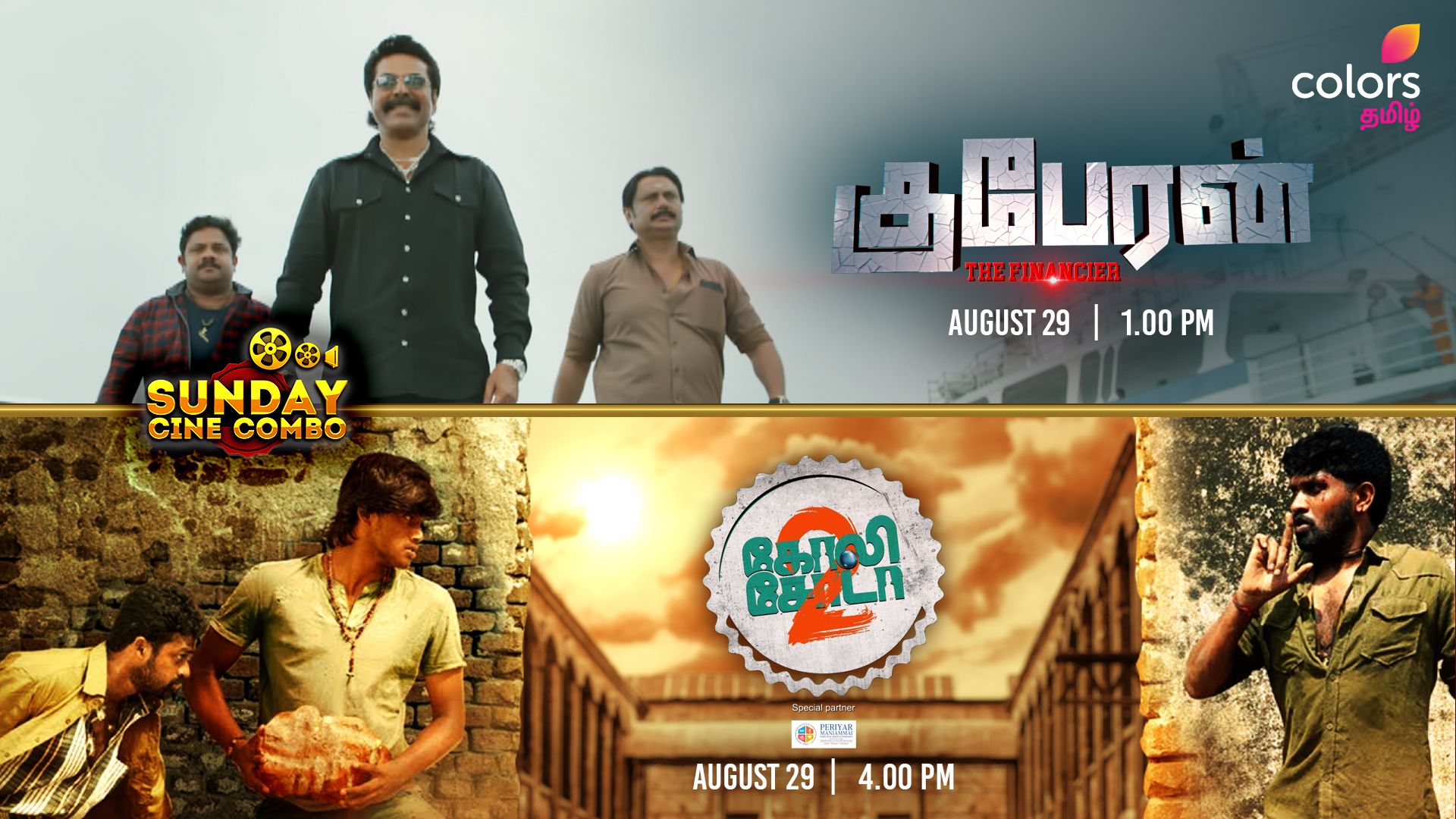 Colors Sunday Cine Combo – World Television Premiere of Kuberan and Goli Soda 2