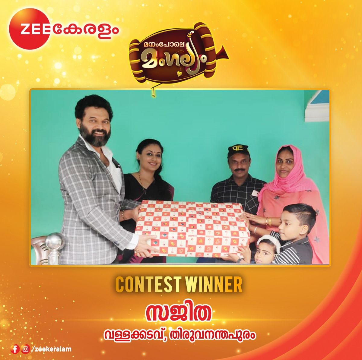 Sajitha, a native of Vallakkadavu, Thiruvananthapuram, is all in surprise to see her favourite serial actors visiting her home on a fine evening. She has won the special contest run by Zee Keralam from December 28 to January 2 as part of Manampole Mangalyam. Niyas and Meera together handed over the prize to winner. The precious moment of the stars and fan meet was aired live by the channel through their Facebook page. The winners of the contest from various parts of Kerala will get their prizes at their door steps. In earlier also, Zee Keralam has made arrangements to receive the prizes at the winner’s door step.