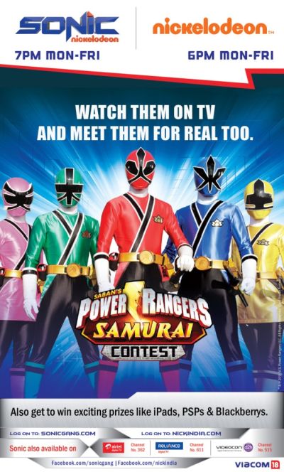Sonic and Nickelodeon, both from the Viacom18 stable, have been entertaining its audience with exciting & adrenaline pumping shows, along with various on-air and on-ground activities. This time around, the channels are all set to play host to the world renowned action heroes – The Power Rangers Samurai!.The Power Rangers will arrive in India to meet their ardent fans. Through “The Power Ranger Tour” of India the rangers will interact with the Indian audience and teach their fans some action-led moves!