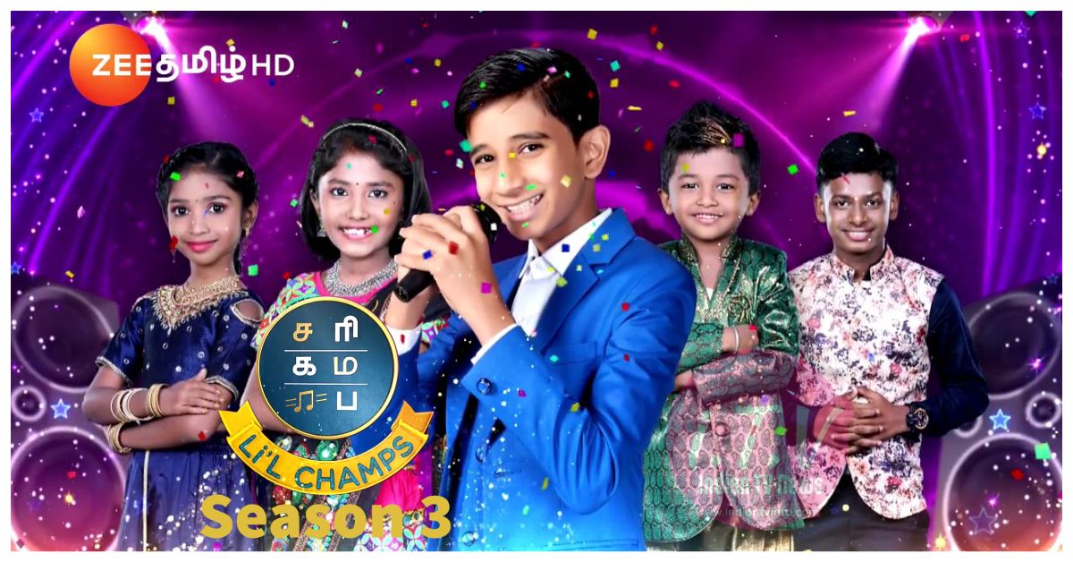 - Rikshitha Jawahar From Ramanathapuram , Kanishkar From Perungalathur (Chennai) , Sanjana From Thiruvetriyur (Chennai), Ruthresh Kumar from Teynampettai (Chennai), Kilmisha from Navaly (Sri Lanka) and Nishanth Kavin from Cuddalore Are The Finalist of Sa Re Ga Ma Pa Tamil Li’l Champs Season 3.