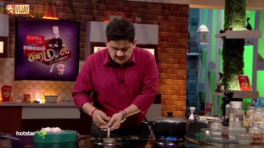 This cookery show would be a first of its kind in South India and a delight to every household. The fun part is, it won’t be just you who will learn cooking, but your favourite stars too. This tamil cookery show would feature celebrities walking into the show and learning cooking to present a dish to their loved ones, cooked with love and of course with the expert advice of our Chef Venkatesh Bhat.