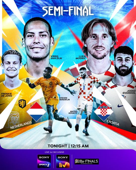 Watch the LIVE coverage of UEFA Nation League 2023: Semi-finals – Netherlands vs Croatia on Sony Sports Ten 2 & Sony Sports Ten 2 HD channels on 15th June 2023 from 12:15 AM IST.