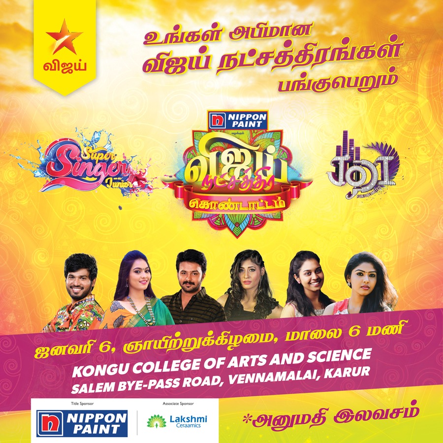 A cheerful news for all the Namakkal, Manaparai and karur residents! Your favorite Vijay TV stars are coming to your city. Yes, you heard it right. So, save your dates, from January 4th, 5th and 6th .