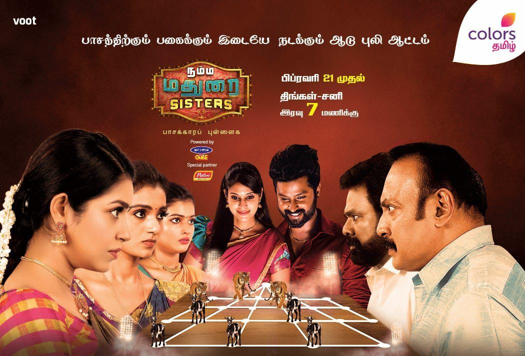 Set in the backdrop of Madurai, Namma Madurai Sisters revolves around the life of four sisters, each with distinctive characteristics. Packed with action, drama and love, the show narrates the life of Indrani (essayed by Actor Chaya Singh), who is laden with family responsibilities at a young age after they lose their parents. Namma Madurai Sisters is set to go on air starting from 21st February Every Monday to Saturday at 07:00 PM only on Colors Tamil.