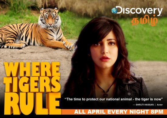 Actor Shruti Hassan Pledges To Support The Cause. Discovery Tamil brings for its viewers a month long programming line-up – WHERE TIGERS RULE, to celebrate India’s regal national animal, tigers.