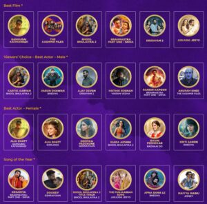The Best Film Category Nominations of ZCA 2023 Are Gangubai Kathiawadi, The Kashmir Files, Bhool Bhulaiyaa 2, Brahmastra: Part One – Shiva, Drishyam 2, JugJugg Jeeyo.