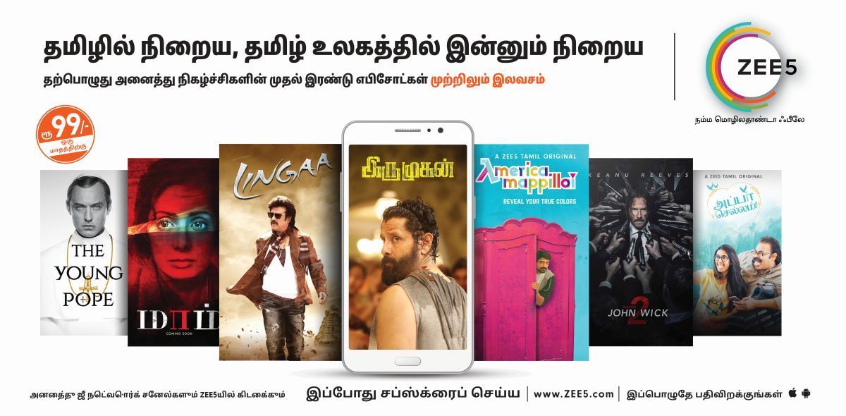 Riding on this unique proposition, the app has now strengthened its Tamil content library with Tamil films such as MOM, Mersal, Mannar Vagaiyara and Iru Mugan, as also ZEE5 Tamil originals such as America Mapillai. In addition, it has now made available original content hits in other languages from the ZEE5 stable including Zero KMS, The Story, Mehmaan, Tamashree, Sone Bhi Do Yaron, Table no 5 and Babbar Ka Tabbar (Hindi), Nanna Koochi (Telugu) and Utsaha Itihasam (Malayalam) in Tamil.